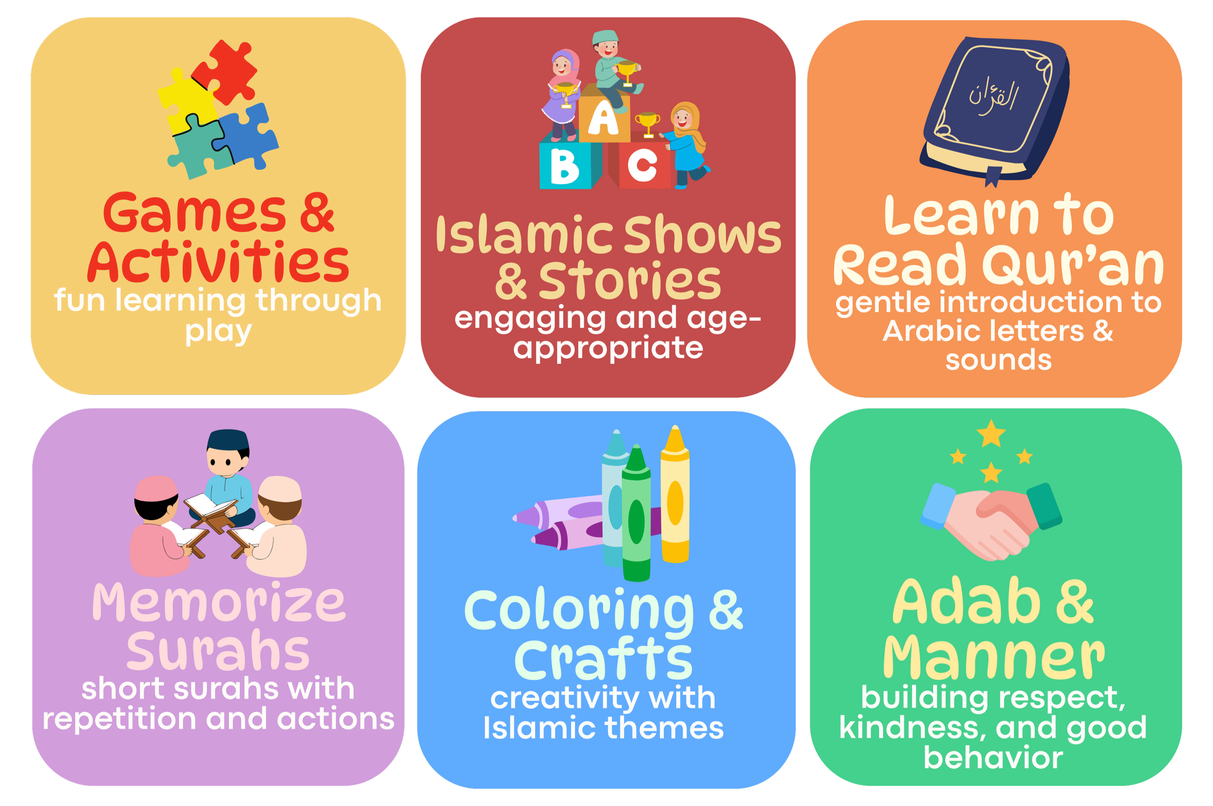 Introduction to Arabic Letters & Qur’ān Reading for boys’ & girls’ 3-6