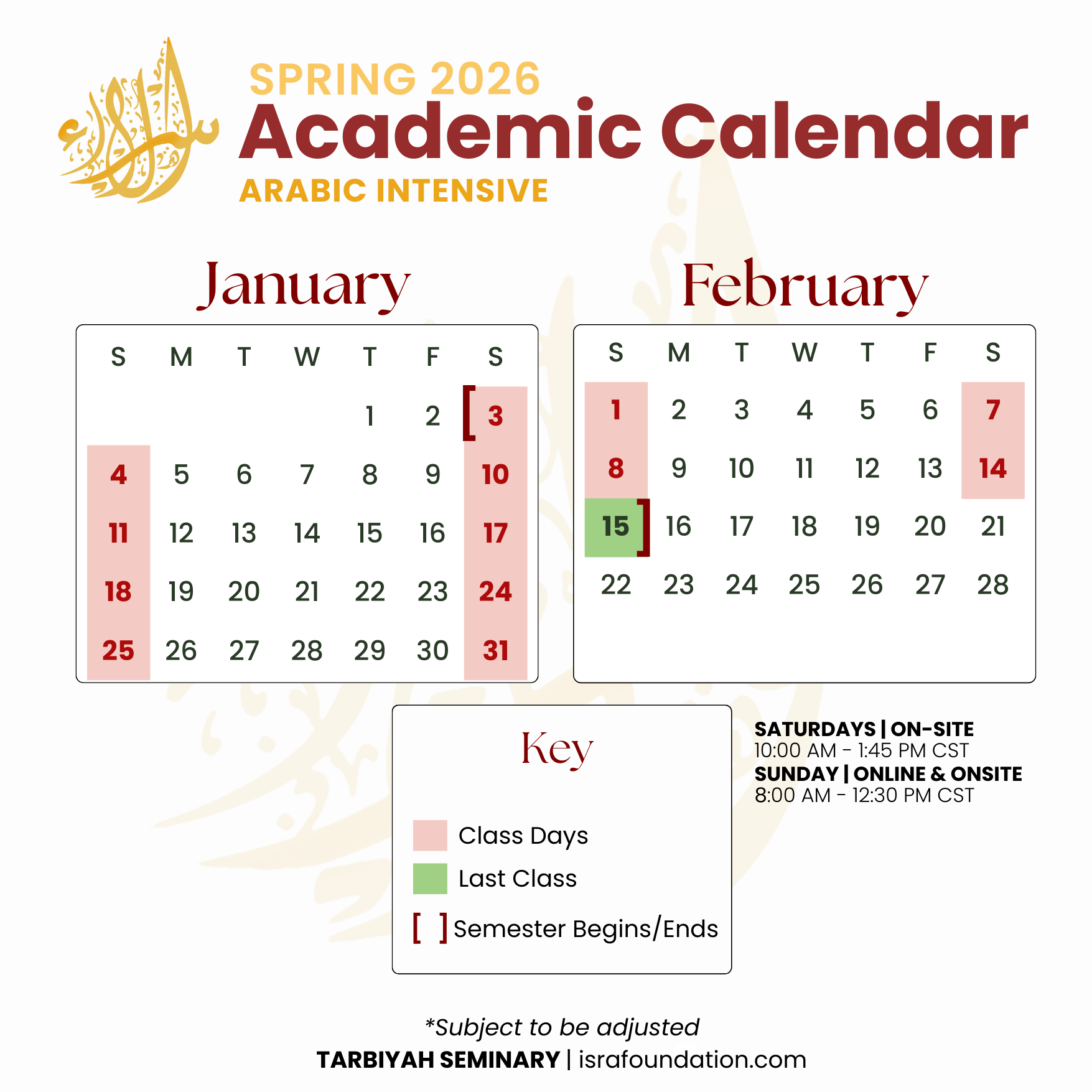 Saturdays | 10:00 AM - 1:45 PM CST | On-site & Online