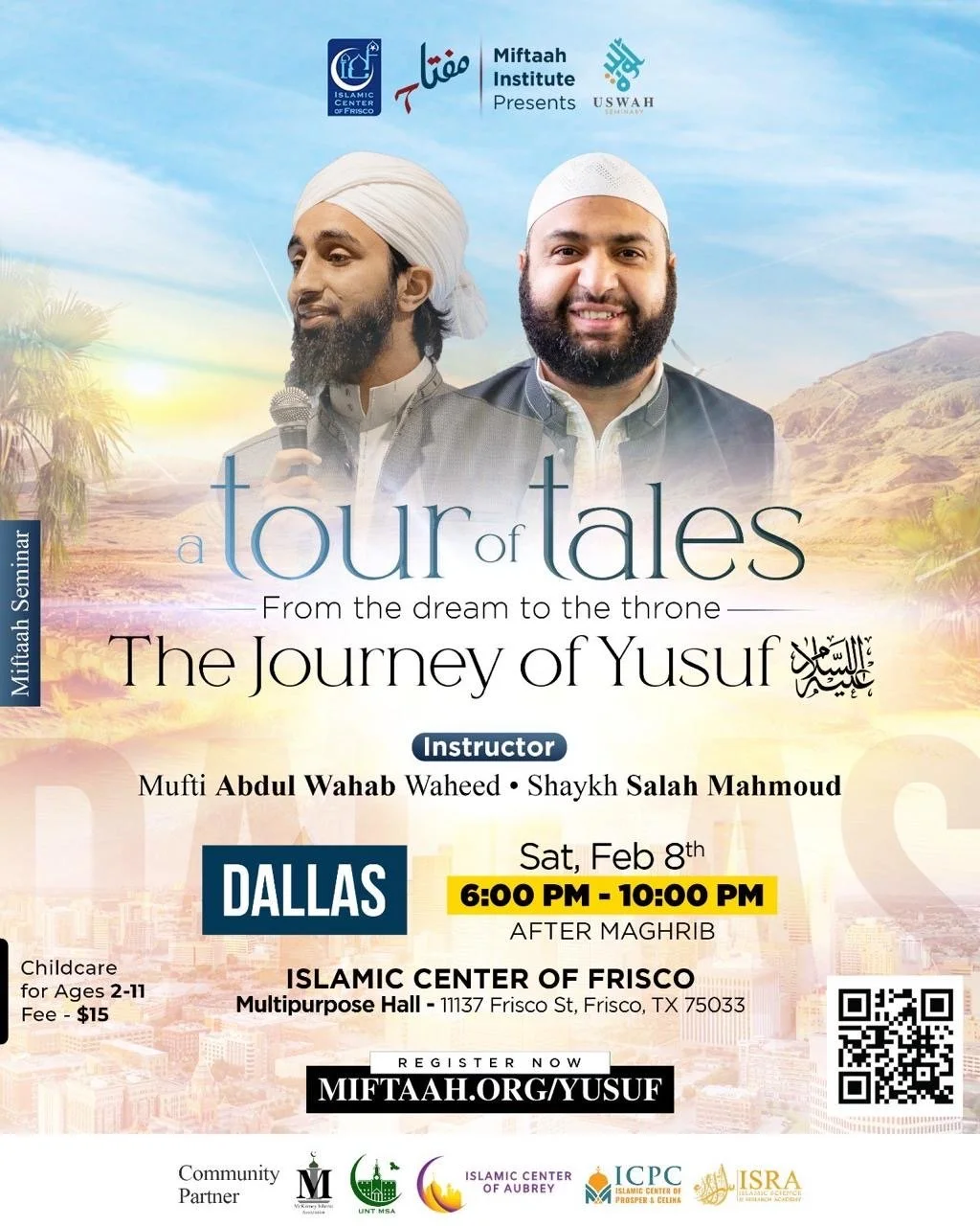 Feb 21 M.E.C.C.A.: Ahlan wa Sahlan Yā Ramadān Friday, February 21, 2025 8:00 PM 10:00 PM Mckinney Islamic Association (map) Google Calendar ICS View Event → Feb 8 A Tour of Tales Saturday, February 8, 2025 8:00 PM 10:00 PM Google Calendar ICS View Event →